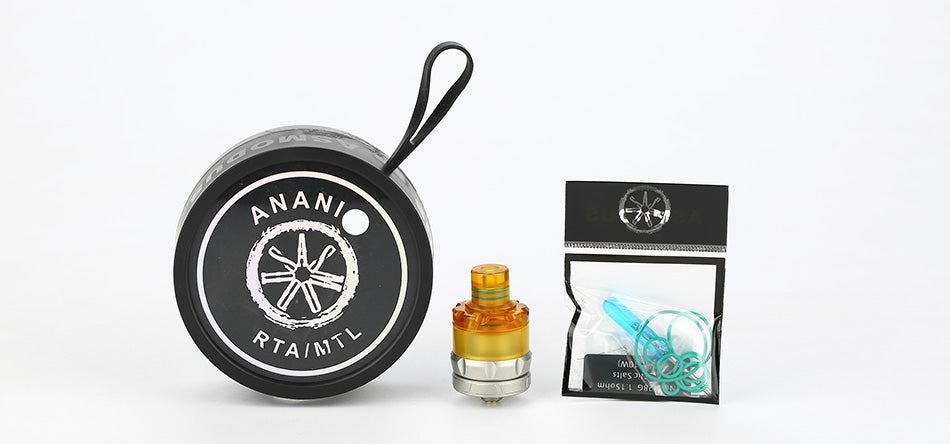The Asmodus Anani MTL RTA is an MTL tank designed to take full advantage of the vape Mods. Made of stainless steel and ultem material to bring more durable use and a visual impact. The Asmodus Anani RTA comes with a 22mm diameter. The two-post deck is best for single coil building. The multiple holes on the deck brings much restricted air inlet to the coil too. The large e-juice well under the build deck allows the iquid to flow effortlessly onto the build deck. The bottom adjustable airflow of Asmodus Anani RTA is best for vapers who chasing the amazing flavor.