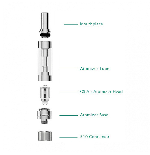 Eleaf GS Air 2 Atomizer, designed for Eleaf iStick Basic Kit, is made from Pyrex glass and stainless steel material, easy to use. The new atomizer head of 0.75ohm is simple in structure and easy to use, mainly featuring the transparent glass tube and adjustable air inflow, comes with 2ml e-juice reservoir and adjustable air inflow, 510 connection that allows the tank compatible with various devices.