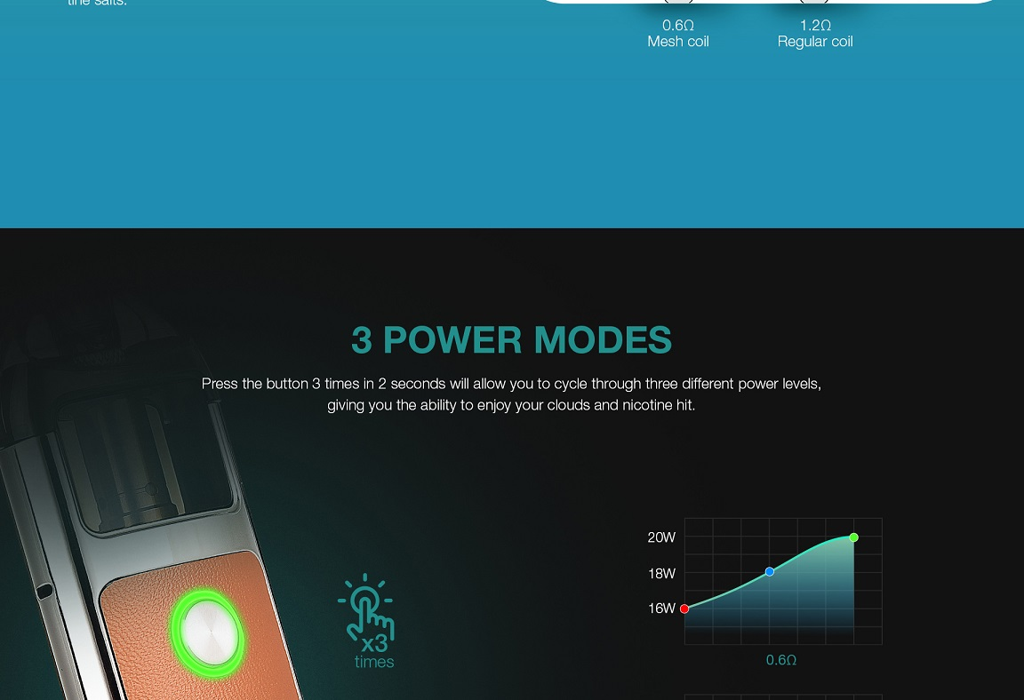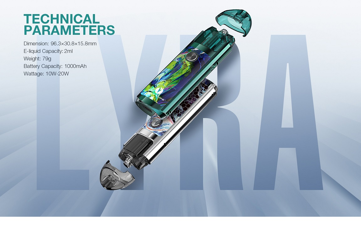 Coil: Lyra mesh 0.6ohm coil(max: 20W), Lyra 1.2ohm MTL coil(max: 10W)