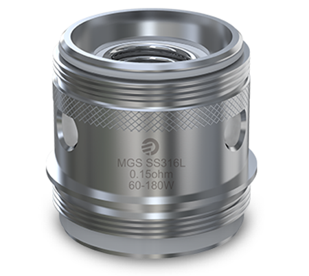 The Joyetech MGS SS316L 0.15ohm head rated from 60-180W, expecting to go through considerable iquid with larger contact. Stainless steel coil can be used under both power mode and as well as TCR mode. Our exclusive recommended output range goes among 80-130W where you can enjoy the best flavor and taste.