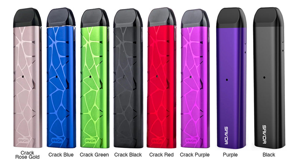 AAA Vape presents the Savor, a slim and streamline pod system featuring a Micro USB port, integrated 700mAh battery, and a 1.4 and 1.0 ohm pod for salt iquids. The AAA vape Savor Pod Kit possesses three levels LED Battery Life Indicator, Green: 100 to 75%/Blue: 74 to 35% /Red: Below 34%, showing the battery life. In addition, the AAA vape Savor Pod is equipped with 1.0ohm coil and 1.4ohm dual coil for satisfying your different needs. Featuring the 1.75ml e-juice capacity and easy side refill design, the AAA Vape Savor Pod System Kit will enable you to enjoy the fun of vping.