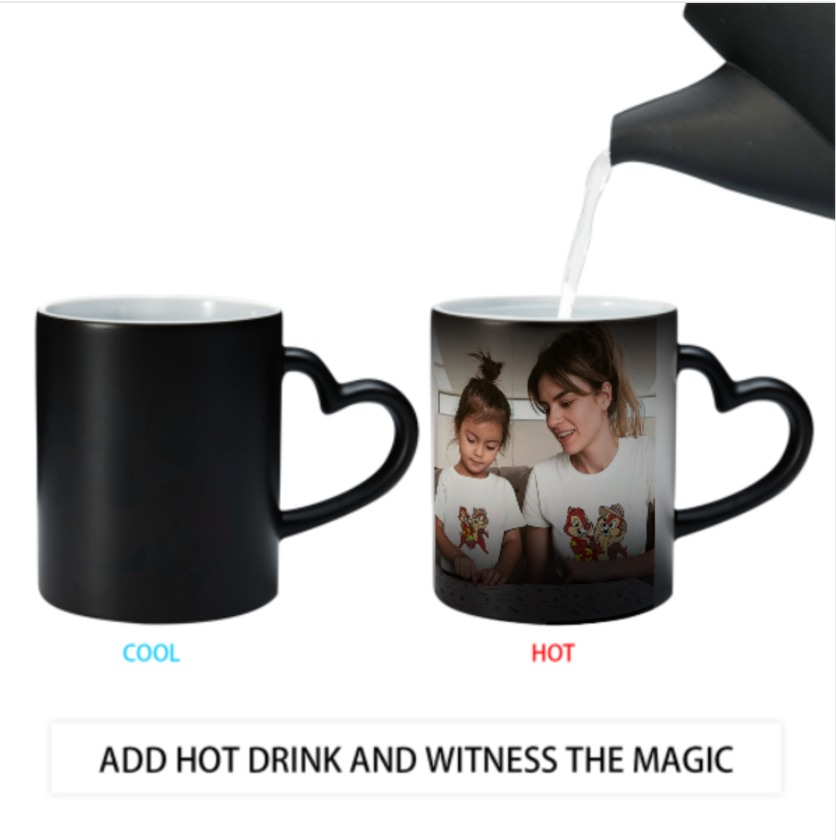 Reveal your photo with a personalised magic mug! Look no further than a personalised heat-changing mug! These mugs are not only functional, but also magical, as it's a mug that changes with heat, making them the perfect gift for any occasion. Perhaps a romantic occasion like Valentine’s day or a celebration moment, such as a birthday. The wonderful thing about a colour change mug is that the recipient will be surprised when the design is revealed. Breakfast or coffee time will never be the same!