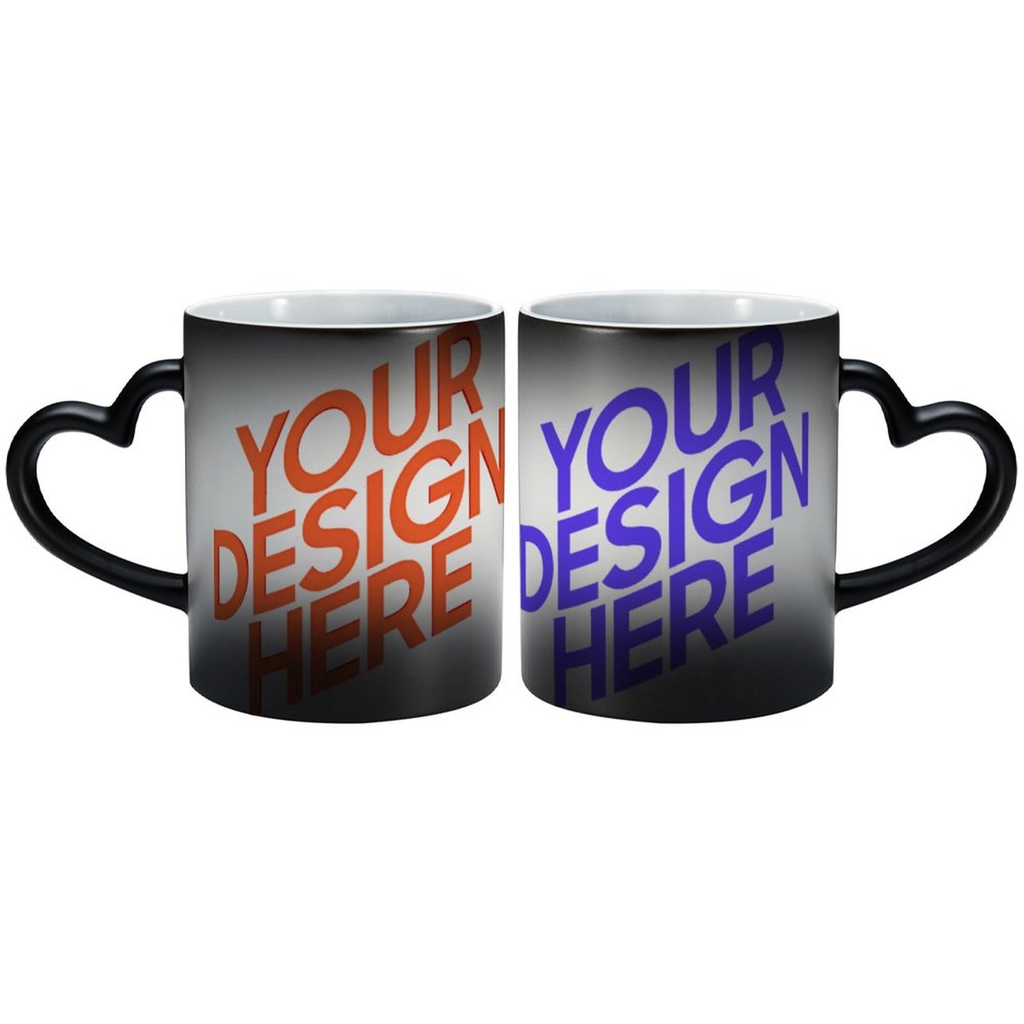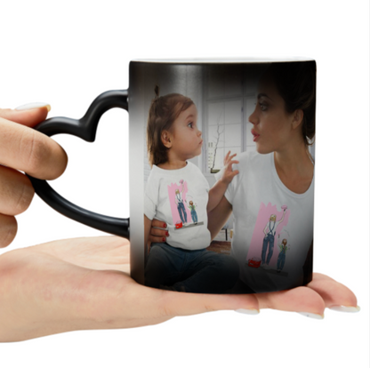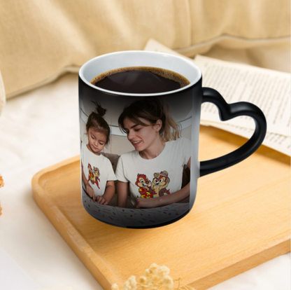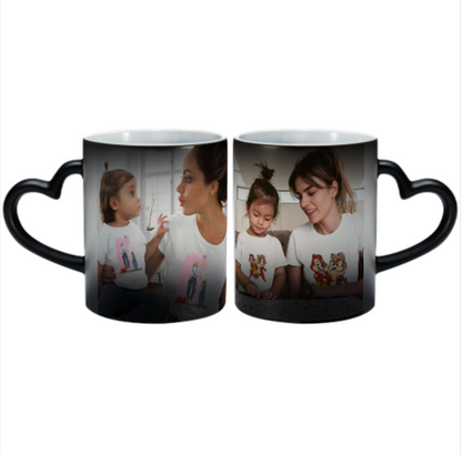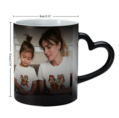 Custom Personalised Magic Photo Mug (Double sided different photos) with a heart-shaped handle - Made in USA, Free Fast Shipping