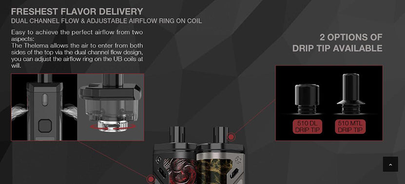 10. Two options of drip tip available: 510 DL drip tip and 510 MTL drip tip