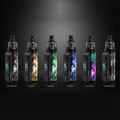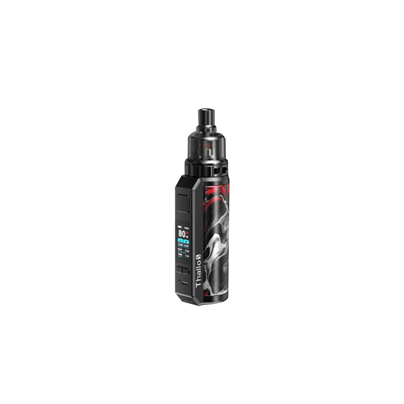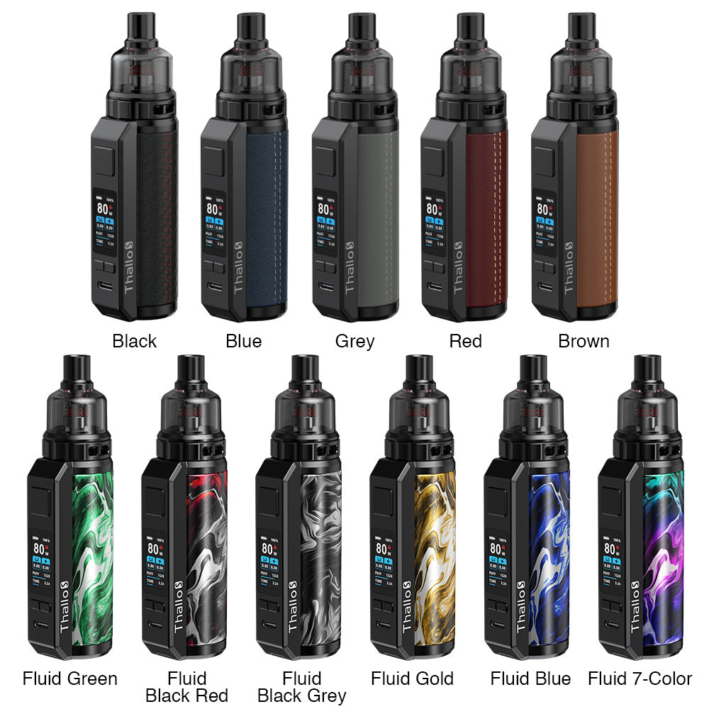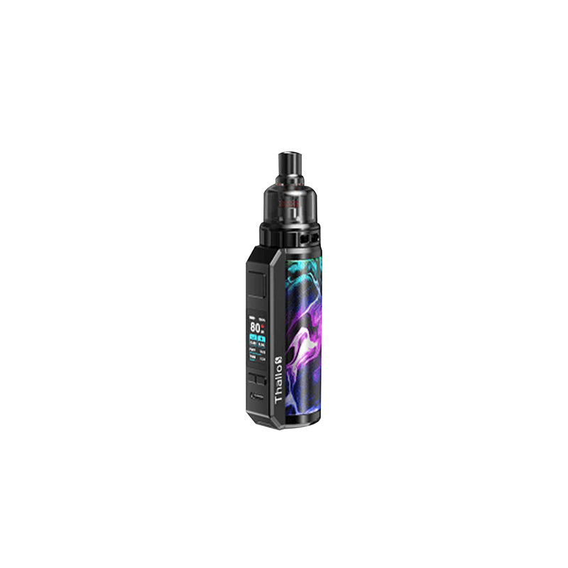 SMOK Thallo 80W Pod Mod Kit decorated with a leather matching for comfortable hand feeling. SMOK Thallo 80W Pod Kit features Brand-new IQ-XS chip with 0.001s fire speed and 0.96 inch screen to display the vaping information. SMOK Thallo Kit has an integrated 3000mAh rechargeable battery and a Type-C charging port. The large-capacity battery extends the standby time and can be fully charged in a short time. SMOK Thallo vape kit is compatible with two newly designed pods: the included Thallo RPM 2 Pod and an optional Thallo RPM Pod (sold separately). Dual applicable pod(RPM 2& RPM) for the doubled experience. Two pods both can hold 5ml e-lquid, have a side filling system and are compatible with RPM 2/RPM coil respectively, so there will be plenty of options to satisfy your particular vape preference. Get more flexibility with your different coils! Two included coils, RPM 2 Mesh 0.16ohm and RPM 2 DC 0.6ohm MTL, respectively focus on producing a plumper taste and tight flavor. In addition, SMOK Thallo has a convenient adjustable airflow system. The airflow ring has a knurled design. The airflow ring can be rotated according to personal tastes to expose more or fewer air inlets to control the airflow, enhancing or weaken the flavor.