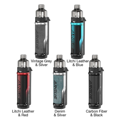 Voopoo Argus Pro Kit is a pod mod system kit that adopts the innovative fusion of metal and leather, the clever combination of color and arc body. And it creates the most comfortable grip with ergonomic design through the use of multi-curve curves. It is powered by built-in 3000mAh battery with adjustable output of 5-80W. VOOPOO Argus Pro 80W Pod Mod kit features the GENE.TT chipset with Double ignition mode/ Smart mode/ RBA mode/ Manual mode. VOOPOO Argus Pro Mod is equipped with OLED Screen. VOOPOO Argus Pro cartridge has 4.5ml large capacity with bottom fill design. VOOPOO Argus Pro pod adopts dual slotted sliding airflow adjustment.