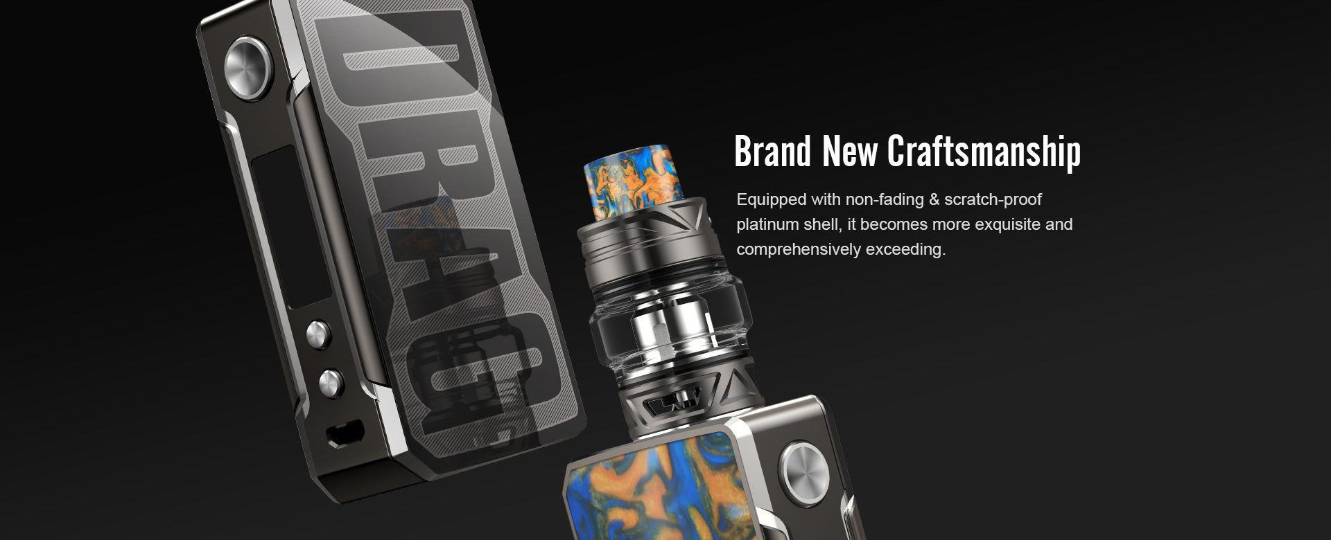 VOOPOO Drag 2 Platinum Edition Kit is a brand new version of Drag 2 kit. This Platinum Edition is equipped with non-fading & scratch-proof platinum shell, which makes the starter kit more exquisite and high-end. It also adopts innovative GENE.FIT chip inside to fit your security. The FIT mode can protect tanks to intelligent matches of FIT1/2/3. The Drag 2 Platinum mod is employed with solid specular finishing and new resin plates, gives you smooth and comfortable hand feeling. It also lighter than original drag 2. The new Uforce T2 tank is compatible with U2/U4/U6/U8/N1/N2/N3/R2/D4 coil.