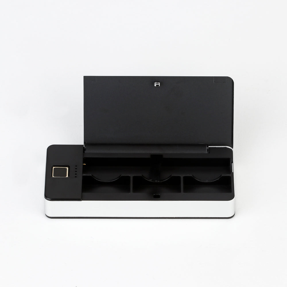 The Wellon Pandora JULL PCC Box is constructed from 1100mAh internal battery and 4 PCC pods position, which is still small and exquisite that you can hide it in your pocket out of door. Wellon Pandora PCC For Juul installed fingerprints lock which can record 40 sets fingermarks without connecting with Phone, WiFi or Bluetooth. Any unauthorized users cannot open your Pandora case. However, Zinc Alloy & ABS material makes its form feeling high-end. Wellon Pandora PCC will keep your Juul away from dust, vape healthily.