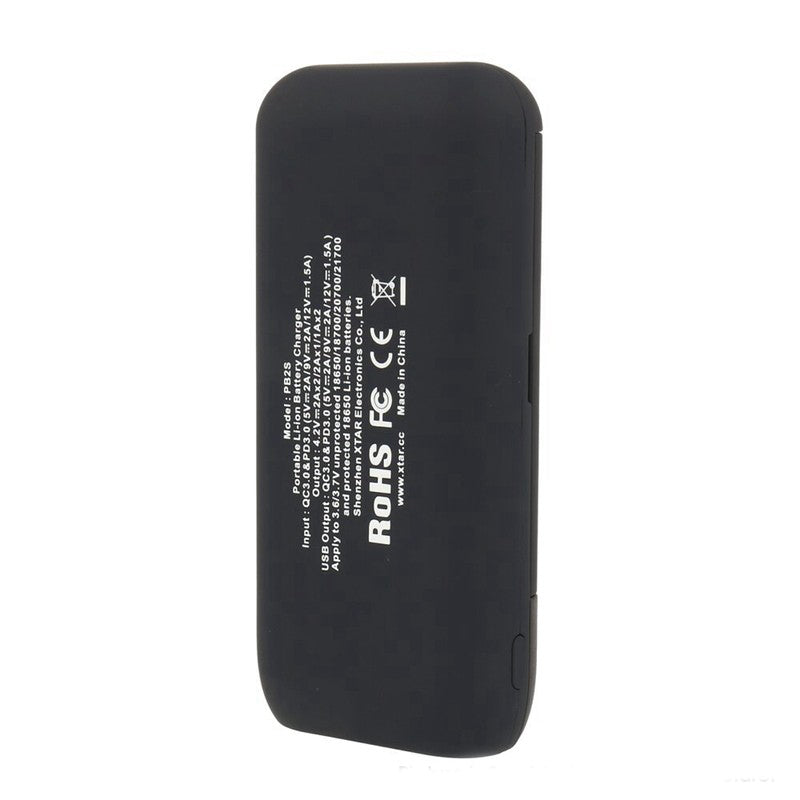 The XTAR PB2S Battery Charger is a Portable 2 Bay charger with a power bank function that is not only an intelligent Li-ion battery charger but also a portable power bank. This charger has a mobile power function to keep the battery in a normal working state, and it can also keep your favorite USB electronic device working normally. The PB2S supports both QC3.0 and PD3.0 fast charging methods for the quick revitalization of batteries, smartphones, tablets, and more. Additionally, the USB-C and USB-A ports work in conjunction with one another to charge two external devices at the same time. The XTAR PB2S Charger also has an easy-to-read screen that provides real-time information such as charging/discharging current, voltage, battery capacity percentage, and this information toggles between the two batteries by single-handedly pressing a button on the side.