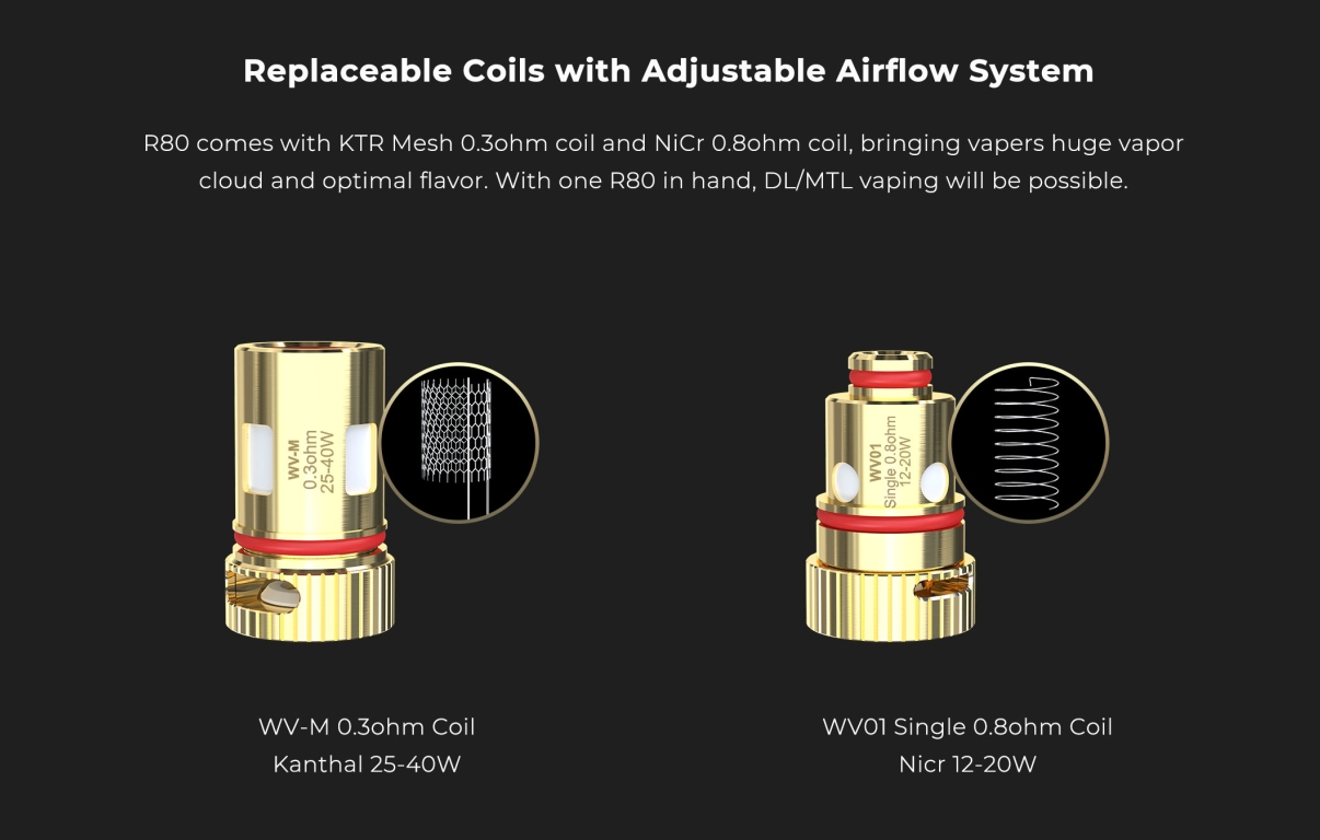 1 x R80 Cartridge (WV-M 0.3ohm Coil Pre-installed)